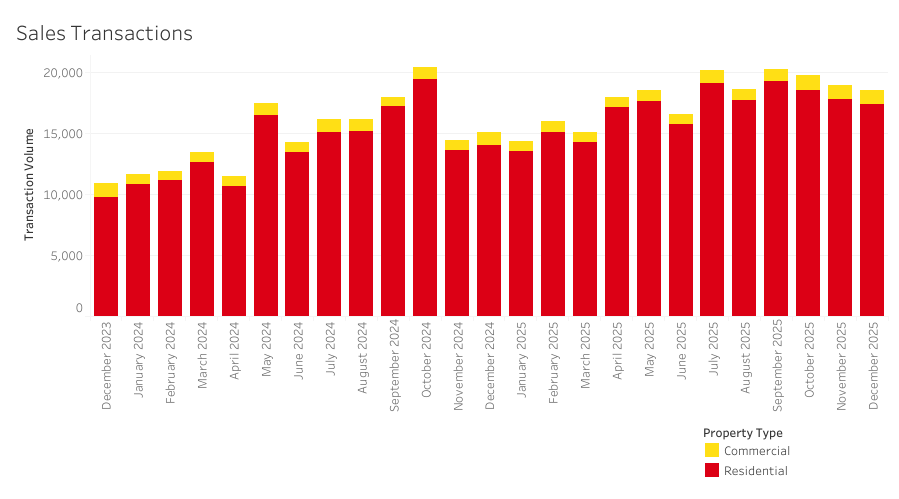 Rezidenční realitní trh v Dubaji si stále udržuje růstovou trajektorii. V roce 2025 se realizovalo celkem 215 458 prodejních transakcí, což znamená růst 18,9 % oproti roku 2024. Drtivou většinu (93,9 %) z toho tvořily rezidenční transakce.