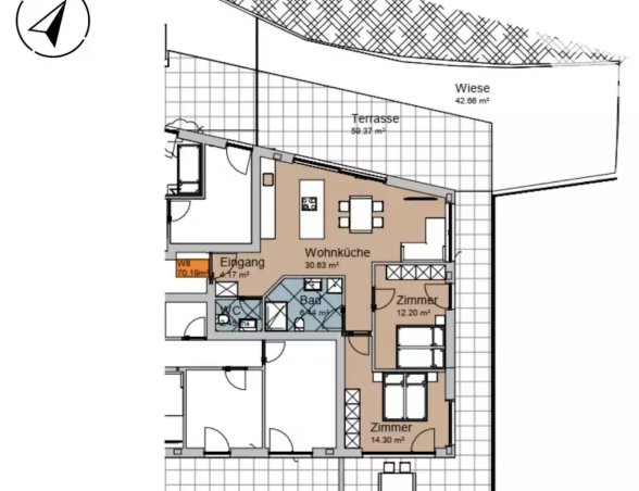 - Většina apartmánů má k dispozici terasu.