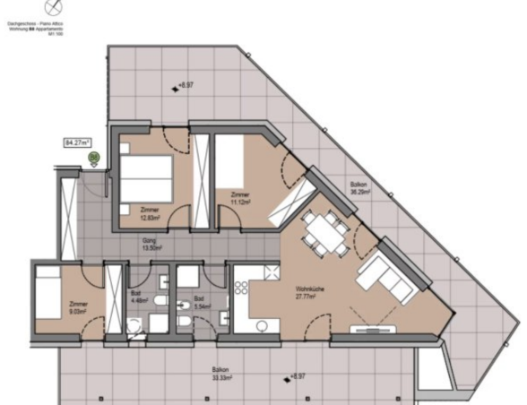 Moderní apartmán v Bolzanu s prostornou střešní terasou