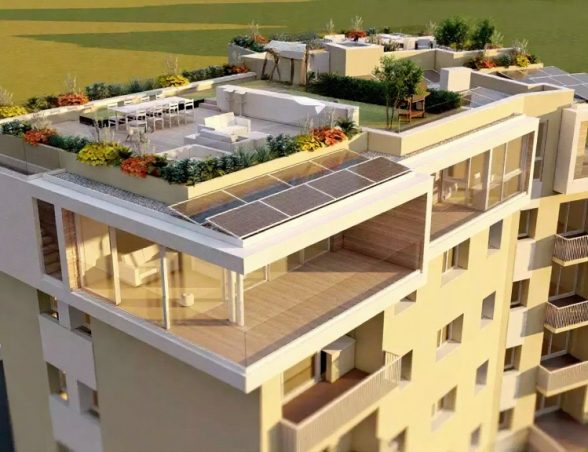 - Moderní interiéry s panoramatickými výhledy a prostornými terasami.