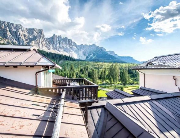 - Panoramatické výhledy na Dolomity z přímo apartmánu na nejvyšším patře rezidence.