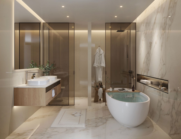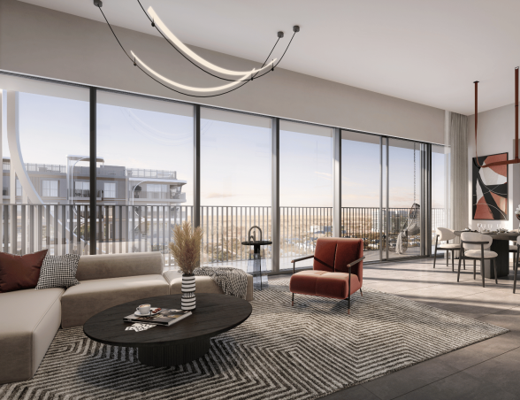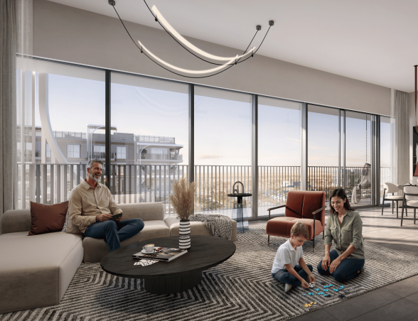 - Luxusní vybavení: Střešní bazén, soukromá posilovna a prostory pro jógu, kino a herní místnost, zenová zahrada, dětská hřiště, lobby lounge, stojany na kola, parkování s EV nabíječkami.