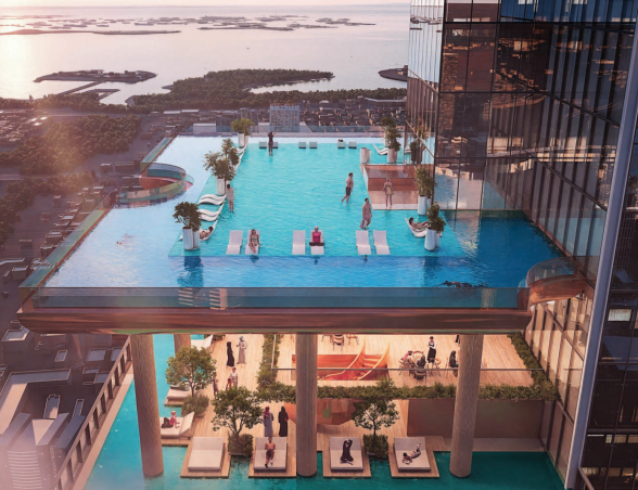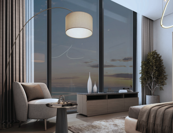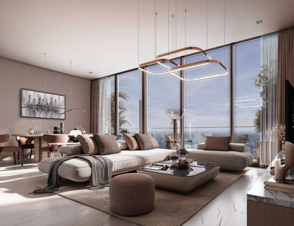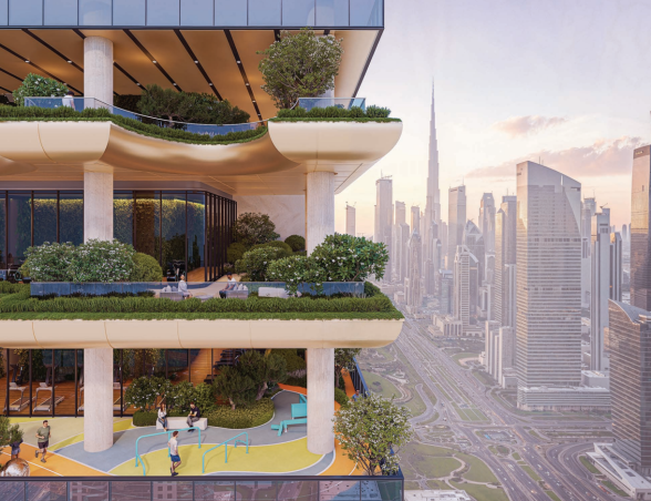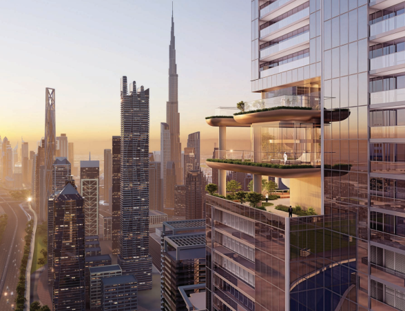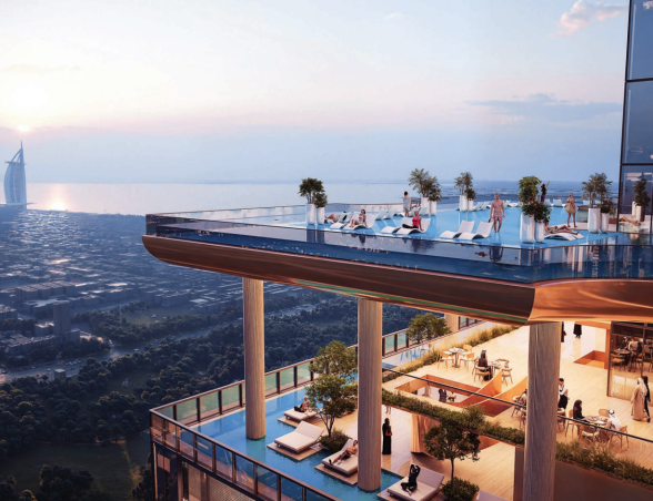 - Ikonická věž o výšce 450 metrů, jedna z nejvyšších rezidencí v Dubaji.
