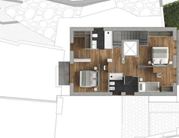 - Exkluzivní, velmi žádaná lokalita přímo v srdci Dolomit - blízko ikonických středisek Corvara, San Cassiano, La Villa a Arabba, propojených se slavnými sjezdovkami Sellarondy.