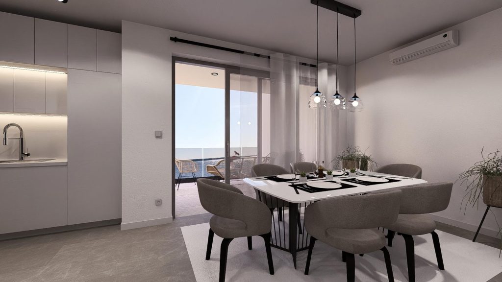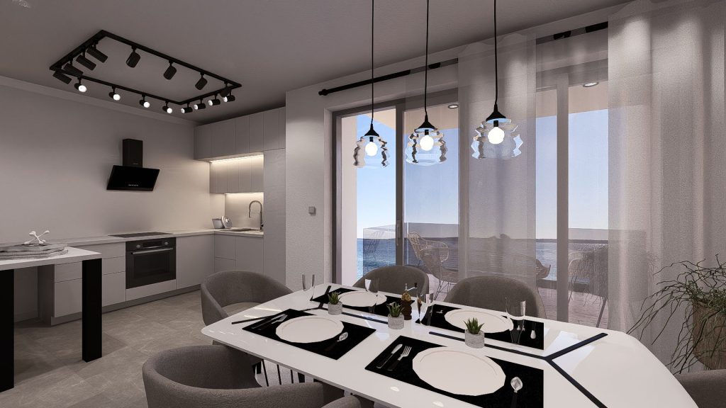 Úplně první linie u moře, pouhých 10 metrů od pobřeží, přináší výjimečné bydlení s nerušenými výhledy a moderní architekturou. Limitovaná novostavba s pouhými osmi apartmány nabízí soukromí, luxus a chytré technologie v jedné z nejžádanějších částí Mandre.